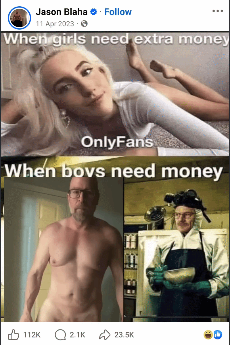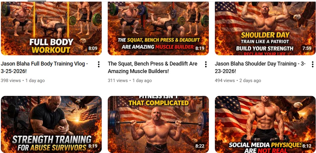 his facebook posts which are sometimes shown on this account https://www.youtube.com/@jasonblahafitnessarchive are proper boomerslop too.