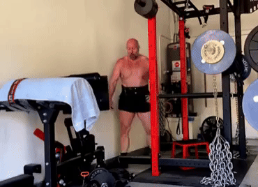 This dudes literally in pain. Can’t hold the bar, knees caving. Alcoholic Big Bad Bloat redness. lifting for two views.