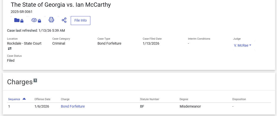 UPDATE! This probably isn’t Bonnie filing this, this is more likely to be Michael Wilson. Not even kidding. I went to pull the documents, there was nothing related to this booking on the 29th but what there was 2 weeks earlier on the 13th something happened that caused Ian to get taken back to jail for bond forfeiture.