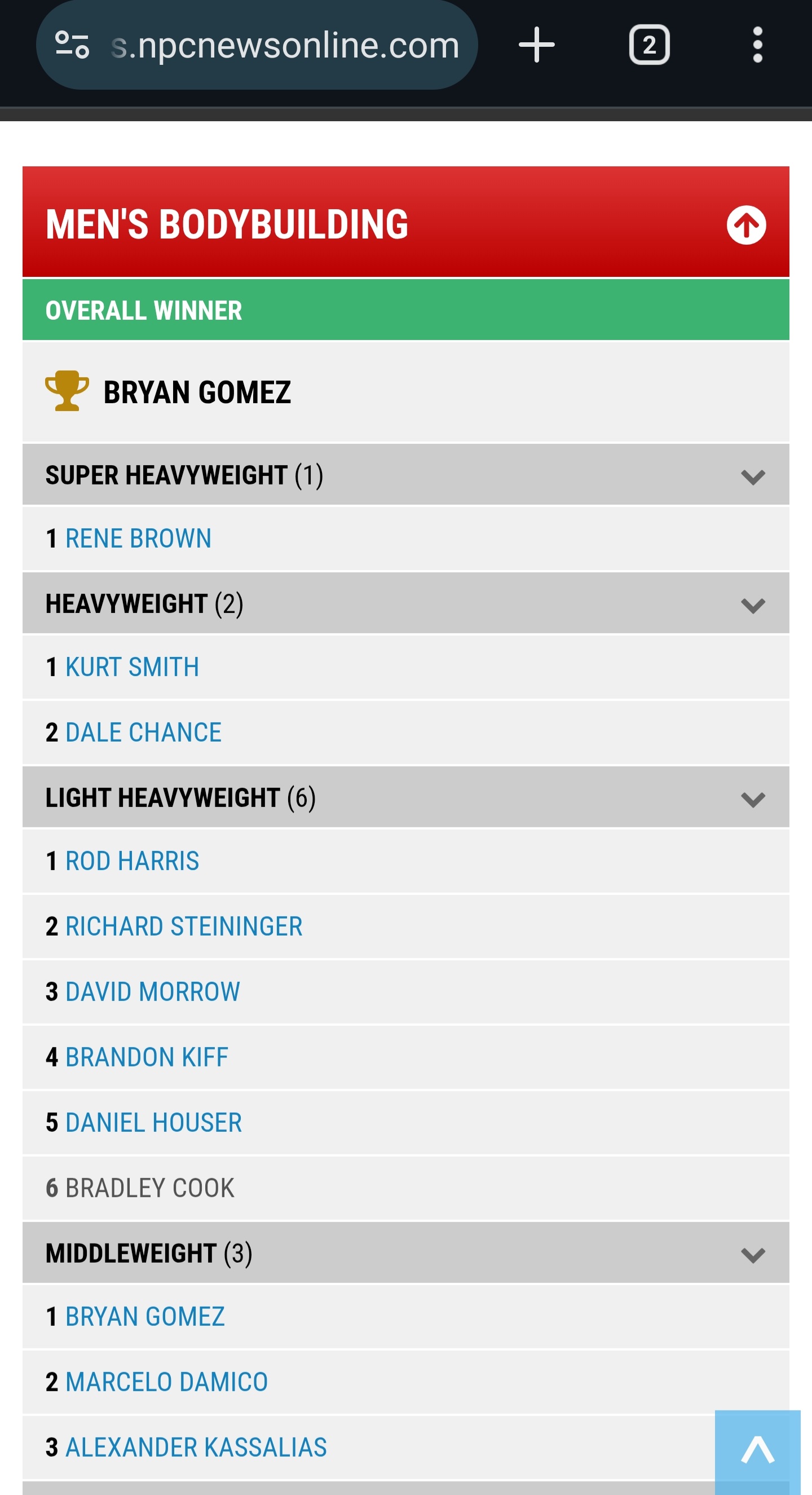 The overall winner was a middleweight. 8 people and 3 classes above him mine as well have not even bothered showing up. When a middleweight wins the overall you know the show was complete shit since 90% of shows are won in the upper weight division.