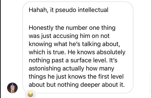 Typical of narcissistic wannabe intellectuals with low to mid level iq. He won’t dig in any deeper because not only does he not have the iq to realize there are complexities he doesn’t know about, but even if he somehow realizes it he’s too lazy and prideful to actually put the effort required anyway.
